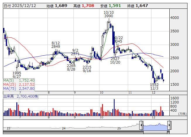 上期経常が赤字転落で着地・8-10月期も赤字転落。