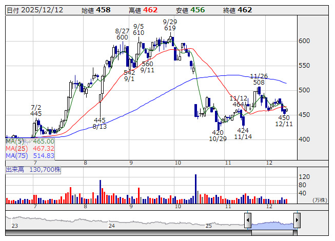 MDV <3902> 542 +80 (+17.3%) 58,300 ( 3,159) 24,366,400 (1,320,658)