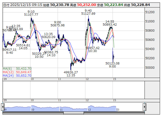 日経平均 <5分足> 売買代金 「株探」多機能チャートより個別ではグローバルX ロボティクス&AI-日本株式ETF <2638> 、NEXT FUNDS 日本高配当株アクティブ <2084> 、iFreeETF TOPIX高配当40 <1651> 、グローバルX 高配当30-日本株式 <235A> 、業界改革厳選ETF地銀 <395A> など41銘柄が新高値。NEXT NOTES 金先物 ベア ETN <2037> が新安値をつけている。