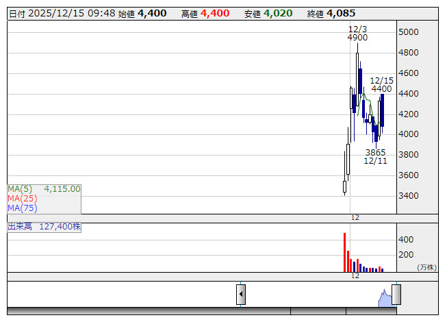 【材料】ヒュマメイドが朝高後マイナスに転じる、第3四半期好決算も利益確定売り