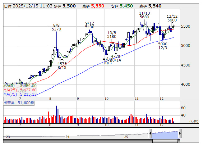 三機工 <日足> 「株探」多機能チャートより■業績動向