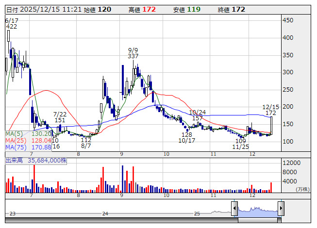 【材料】前場のランキング【値上がり率】 (12月15日)