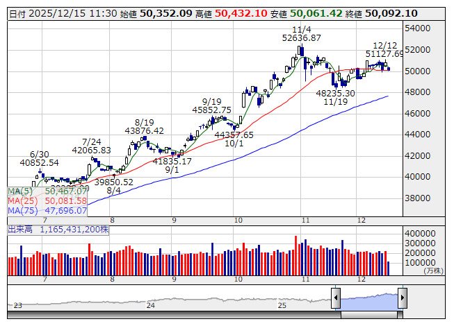 日経平均 <日足> 「株探」多機能チャートより・地域新聞社がS高、「生成AIを活用した心理状態デジタルツインによる介入効果最大化技術」の特許権利化