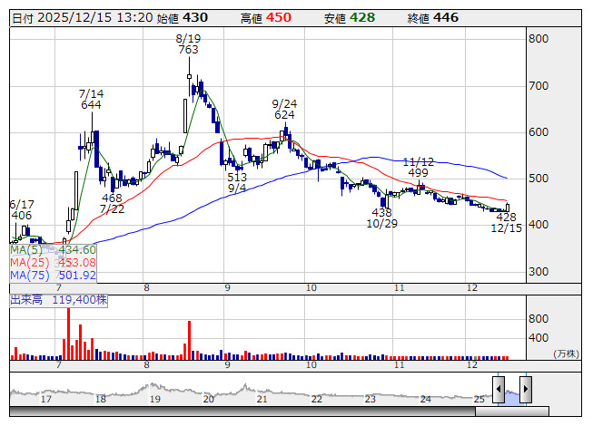 農業総研 <日足> 「株探」多機能チャートより