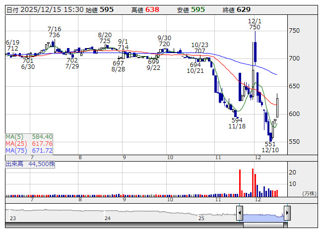 ハピネス&D <日足> 「株探」多機能チャートより■財務省 : 12月15日受付