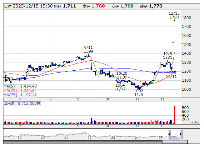 ラクスル <日足> 「株探」多機能チャートより■財務省 : 12月15日受付