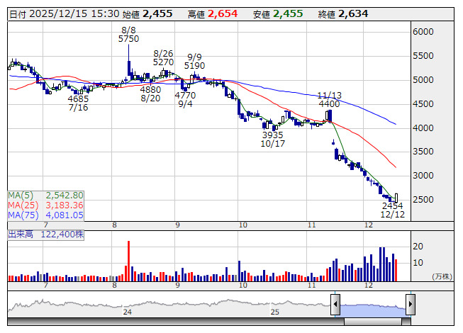 Arent <日足> 「株探」多機能チャートより■財務省 : 12月15日受付