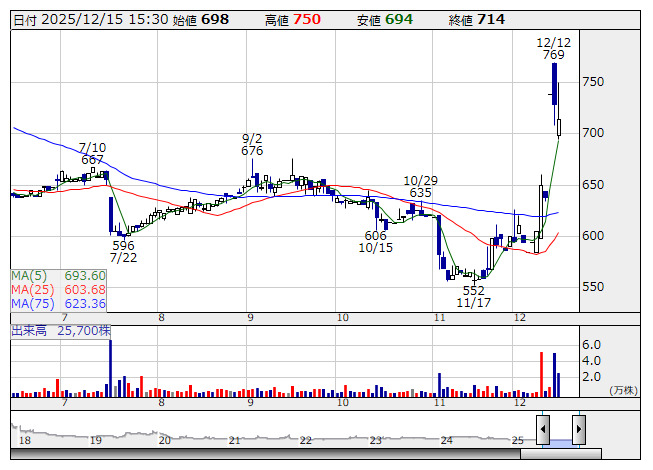 クックビズ <日足> 「株探」多機能チャートより■財務省 : 12月15日受付