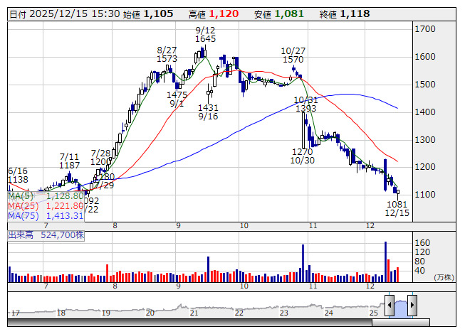 グッドコムA <日足> 「株探」多機能チャートより不動産ファンドへの販売を継続的に実施するほか、富裕層への販売強化などによって販売戸数の拡大を見込む。同時に発表した25年10月期決算は売上高が545億8100万円(前の期比8.7%減)、営業利益が29億3500万円(同46.2%減)だった。物価高やマンション価格の上昇を背景に、主要顧客の公務員への販売が減少した。