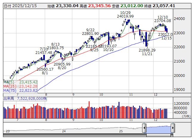 [NY市場データ]15日の米国株式市場は続落。ダウ平均は41.49ドル安の48416.56ドル、ナスダックは137.76ポイント安の23057.41で取引を終了した。次期連邦準備制度理事会(FRB)議長が率いるハト派寄りの連邦公開市場委員会(FOMC)を期待した買いに寄り付き後、上昇。その後、NY連銀製造業景気指数や住宅市場指数を受けて成長懸念が強まり、相場は下落に転じた。ハイテクセクターのバブル懸念が存続したほか、雇用統計を警戒した売りが重しとなり、終盤にかけても軟調推移し、終了。セクター別では自動車・自動車部品が上昇した一方、テクノロジー・ハード・機器が下落した。シカゴ日経225先物清算値は大阪日中比145円安の50095円。ADR市場では、対東証比較(ドル155.52円換算)で、東エレク<8035>、トヨタ自<7203>、三井物産<8031>、ファーストリテ<9983>などが上昇した。