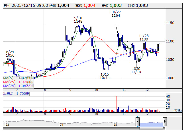 ウェルス <日足> 「株探」多機能チャートより■財務省 : 12月16日受付