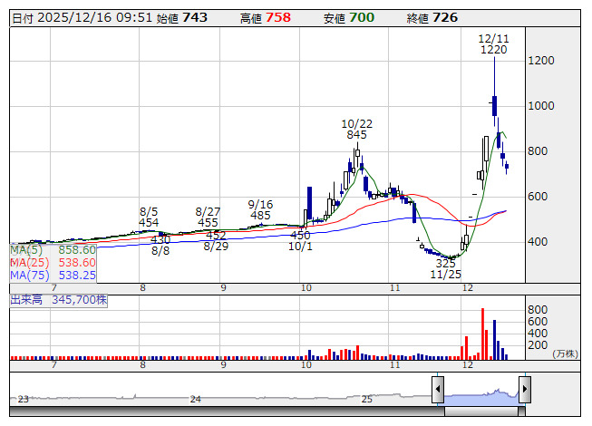 ヒーハイスト <日足> 「株探」多機能チャートより