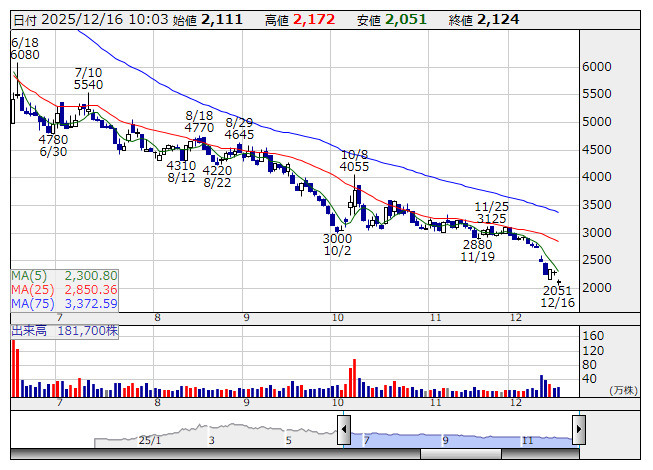 テラドローン <日足> 「株探」多機能チャートより