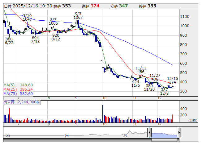 5535>は大幅続伸。株主優待の実施を発表している。26年3月末に500株以上保有している株主が対象、デジタルギフト10000円分を贈呈するとしている。DX推進事業の収益性向上などによる業績の拡大を要因としており、今回限りの実施ではあるもよう。優待利回り妙味が意識される状況となっているもよう。なお、26年3月期の業績修正も発表、営業利益は従来予想の29億円から30億円、前期比10.6%増に上方修正している。