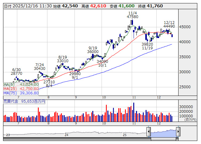 日経レバ <日足> 売買代金 「株探」多機能チャートより売買代金