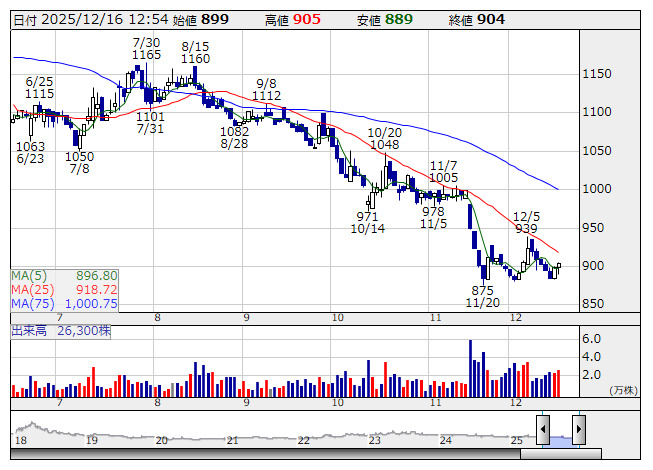 ハナツアーJ <日足> 「株探」多機能チャートより同時に、通期最終利益予想を15億6000万円から10億1000万円~11億1000万円(前期比37.9~31.8%減)へ下方修正した。Tマークシティホテル札幌の営業終了及び建物解体に伴い、解体費用等の引当計上として4億2000万~4億8000万円、固定資産の減損損失として3000万~7000万円を特別損失に計上する見込みであることが要因としている。