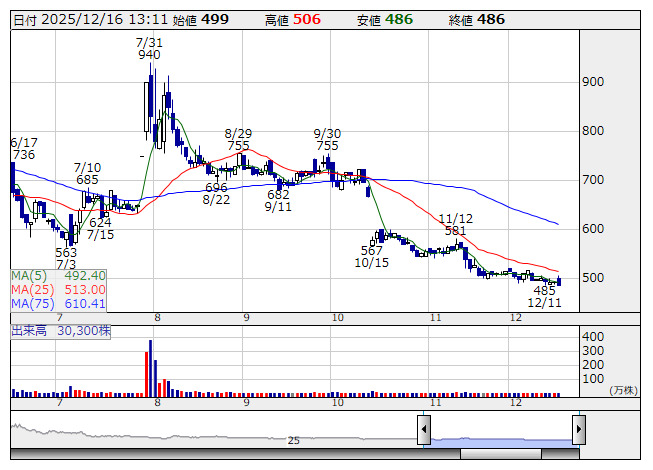 ウェリタス <日足> 「株探」多機能チャートより同社では、自社パイプラインで開発を進めているシンプルな核酸医薬品とあわせて使用することにより、治療コストを抑えつつ、さまざまな臓器や疾患に新たな治療の選択肢を提供できる可能性があるものとして、今後は早期の実用化に取り組むという。なお同件が、26年12月期以降の業績へ重要な影響を与える可能性については精査中としている。