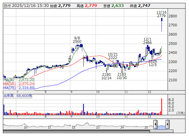 Fインタ <日足> 「株探」多機能チャートより―決算で買われた銘柄! 上昇率ランキング―