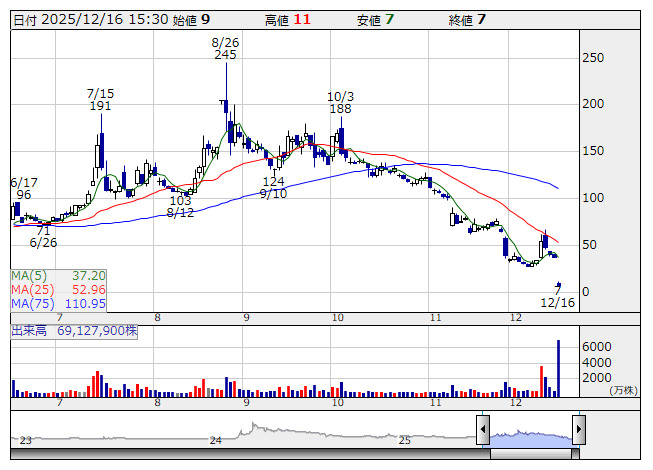 ピクセル <日足> 「株探」多機能チャートより■財務省 : 12月16日受付