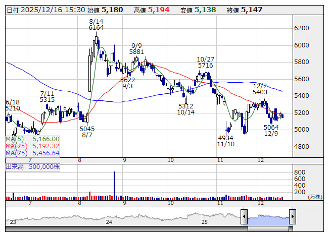 2025年12月16日15時59分 【材料】ホシザキが25年12月期配当予想を増額修正 ホシザキ <日足> 「株探」多機能チャートより ホシザキ<6465>がこの日の取引終了後、25年12月期の期末配当予想を55円から65円へ増額修正した。年間配当予想は115円となり、前期実績(105円)に対しては10円の増配となる。 出所:MINKABU PRESS