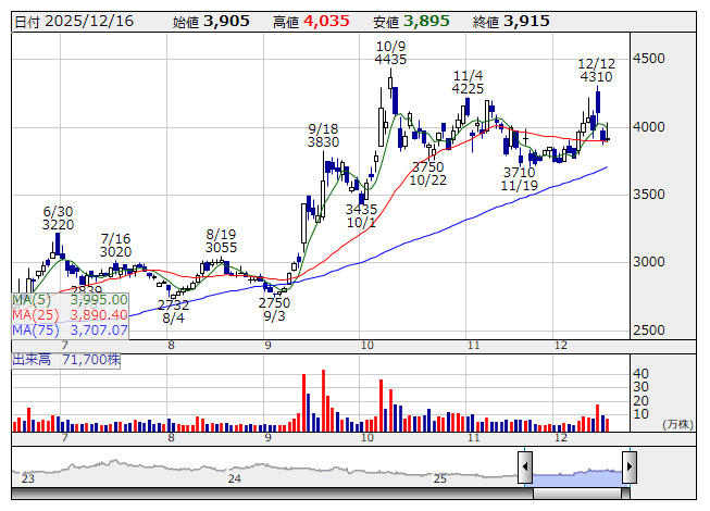 サムコ <日足> 「株探」多機能チャートより17日前場の取引では以下の3つのポイントに注目したい。