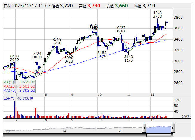 2025年12月17日11時07分 【材料】三陽商が4日続伸、英AVIの買い増しで思惑 三陽商 <日足> 「株探」多機能チャートより 三陽商会<8011>が4日続伸している。英投資ファンドのアセット・バリュー・インベスターズ(AVI)が16日の取引終了後に関東財務局へ提出した変更報告書のなかで、株式保有比率は5.36%から6.38%に上昇したことが明らかとなり、思惑視した買いが入っている。報告義務発生日は12月8日。保有目的は「純投資及び重要提案行為等を行うこと」としている。 出所:MINKABU PRESS