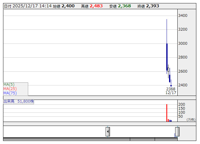 フィットクル <日足> 「株探」多機能チャートより■財務省 : 12月17日受付