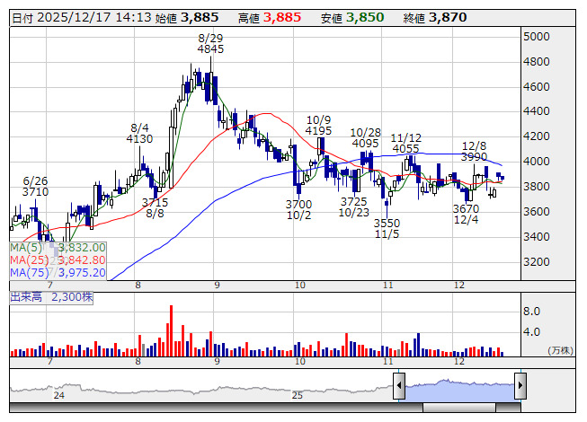 ドリムアーツ <日足> 「株探」多機能チャートよりドリーム・アーツ<4811>は15日、2025年2月14日に公表した2025年12月期の通期連結業績予想および期末配当予想の修正を発表した。