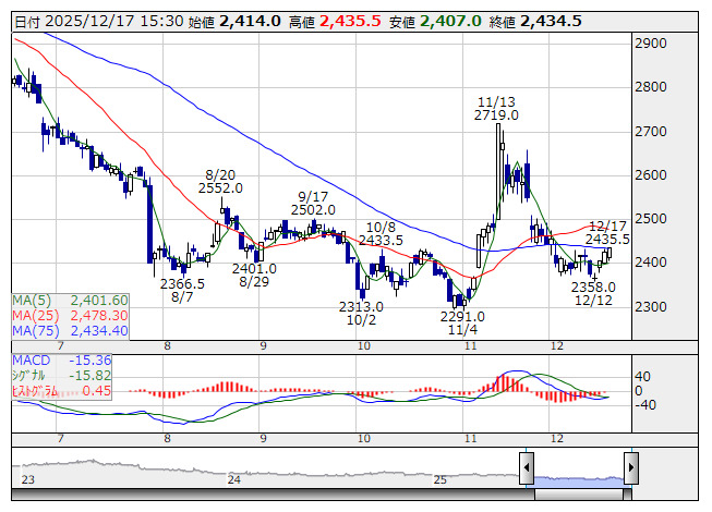 <2267> ヤクルト本社 2434.5 +9 ( +0.4%) -15.4