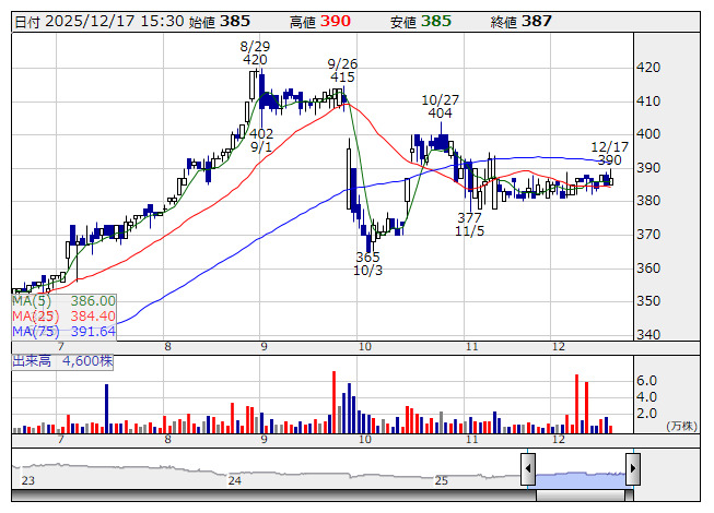 オルアバウト <日足> 「株探」多機能チャートより■財務省 : 12月17日受付