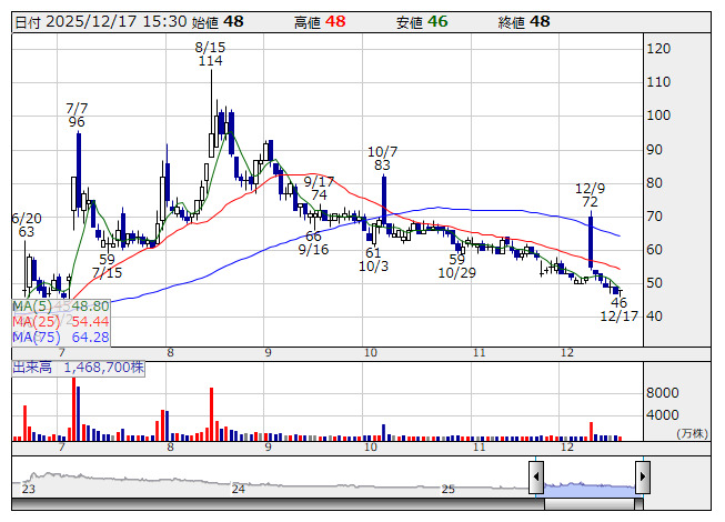 ブライトパス <日足> 「株探」多機能チャートより■財務省 : 12月17日受付