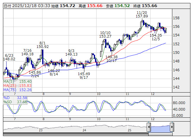 まちまちな入札結果で、ドル・円は155円60銭で高止まりとなった。
