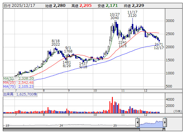 調整一巡感でフィジカルAI関連としてリバウンド。