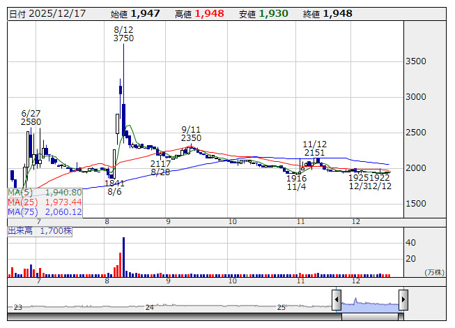 協立情報通信 <日足> 「株探」多機能チャートより協立情報通信<3670>