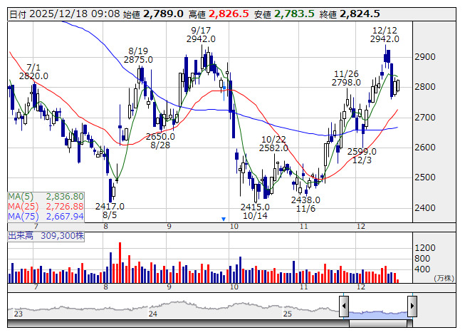 ニトリHD <日足> 「株探」多機能チャートより■財務省 : 12月18日受付