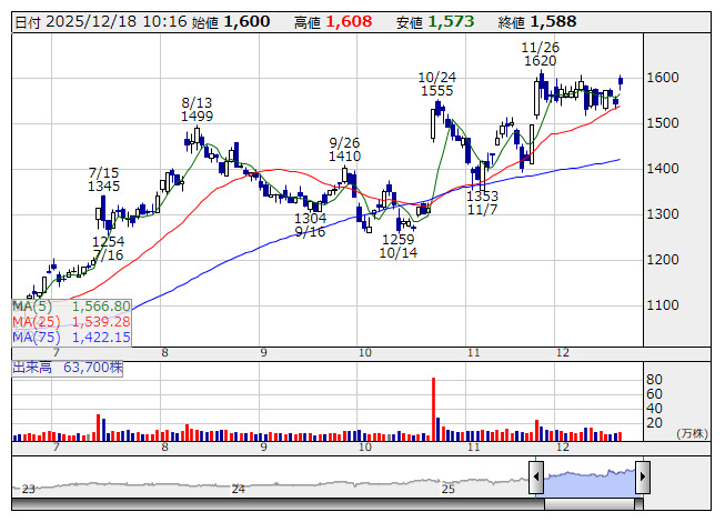 2025年12月18日10時16分 【材料】アドソル日進が3日ぶり反発、記念配当5円実施方針を好感 アドソル日進 <日足> 「株探」多機能チャートより アドソル日進<3837>が3日ぶりに反発した。同社は17日の取引終了後、26年3月期の期末配当予想の修正を発表。これまでは23円としていたが、創立50周年を迎えることによる記念配当5円を加えて、28円に見直す。記念配当の実施方針を好感した買いが入ったようだ。年間配当予想は記念配当5円を含めて46円となる。株式分割を考慮したベースで前期の年間配当は30円だった。 出所:MINKABU PRESS