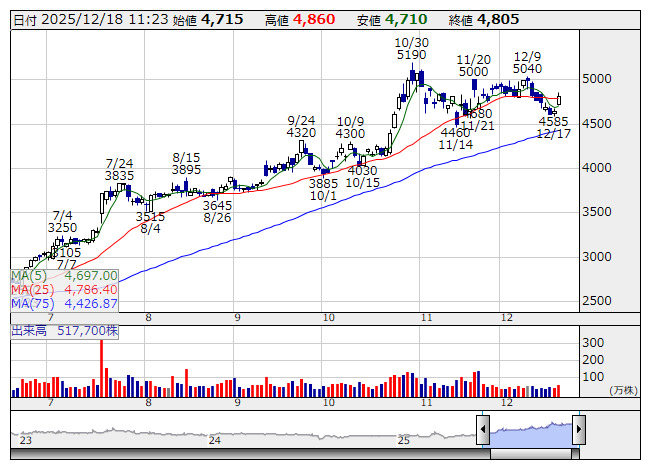 フェローテク <日足> 「株探」多機能チャートより半導体製造装置向け部品を手掛ける同社を巡っては、アクティビストとして知られる香港の投資ファンドのオアシス・マネジメントの保有割合が8.50%となったことが17日の取引終了後に明らかになった。保有目的はポートフォリオ投資及び重要提案行為。報告義務発生日は10日となっている。これを手掛かりに同社株は続騰した。一方で前日の米株式市場では、一部投資会社がオラクル<ORCL>のAIデータセンター建設計画に関する出資交渉から撤退したと伝わり、半導体関連株が軒並み安となり、東京市場においても同様の展開となっている。AIブームの先行き懸念が台頭するなか、フェローテクに対しても騰勢一服後の反動を警戒する向きがあって、売り予想数の増加につながったとみられている。
