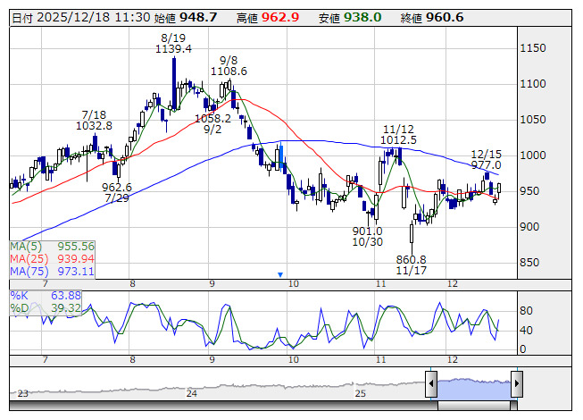 <5016> JX金属 1699.5 -27.5 ( -1.6%) 1709.4