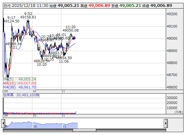 【市況】日経225先物:18日正午=540円安、4万9030円