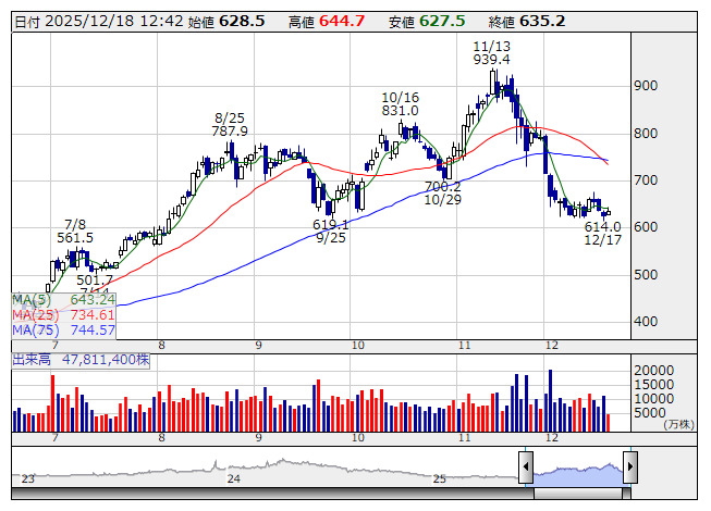 9501>は反発。柏崎刈羽原発6号機の原子炉を起動して再稼働させる日程を、2026年1月20日を軸に調整していることが分かったと伝わっている。福島原発事故後で初の再稼働となる。起動後は調整運転に入り、1-2カ月後に規制委の確認が終われば営業運転に移行するようだ。原発再稼働承認後は出尽くし感も優勢となる場面があったが、スケジュール感も確認できたことで、あらためて原発再稼働による収益増を期待する動きになっている。