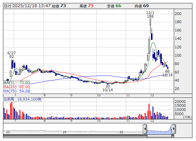 大黒屋 <日足> 「株探」多機能チャートより■財務省 : 12月18日受付
