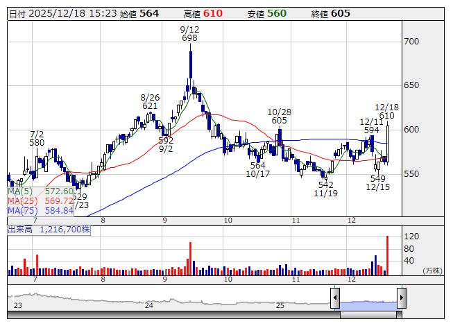 鎌倉新書 <日足> 「株探」多機能チャートより