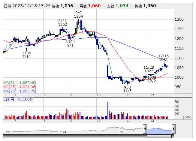 チヨダ <日足> 「株探」多機能チャートより■財務省 : 12月18日受付