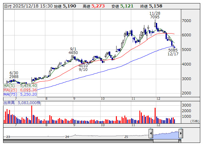 三井E&S <日足> 「株探」多機能チャートより■財務省 : 12月18日受付