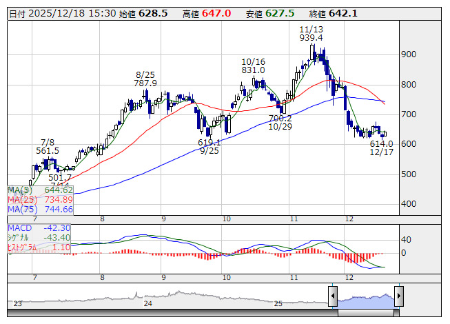銘柄名 株価 前日比 (比率) MACD