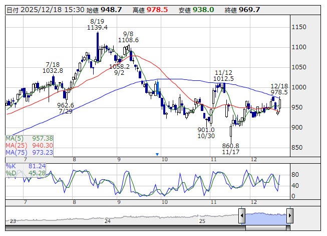 銘柄名 株価 前日比 (比率) 25日移動平均