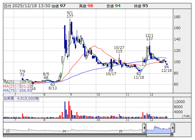 CAICAD <日足> 「株探」多機能チャートより12月19日の決算発表銘柄(予定)