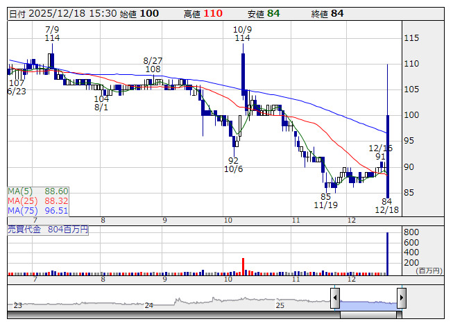 【材料】本日のランキング【売買代金 増加率】 (12月18日)