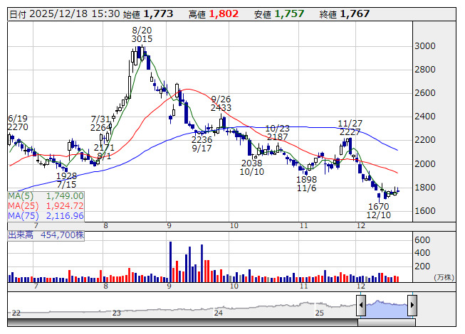 Lドリンク <日足> 「株探」多機能チャートより■財務省 : 12月18日受付