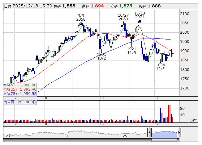ジーテクト <日足> 「株探」多機能チャートより■財務省 : 12月18日受付